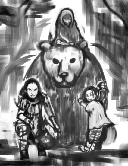 敵同士である三人をモデルに、お互い敵である白斎と、俺が、一枚ずつ描いた絵。
